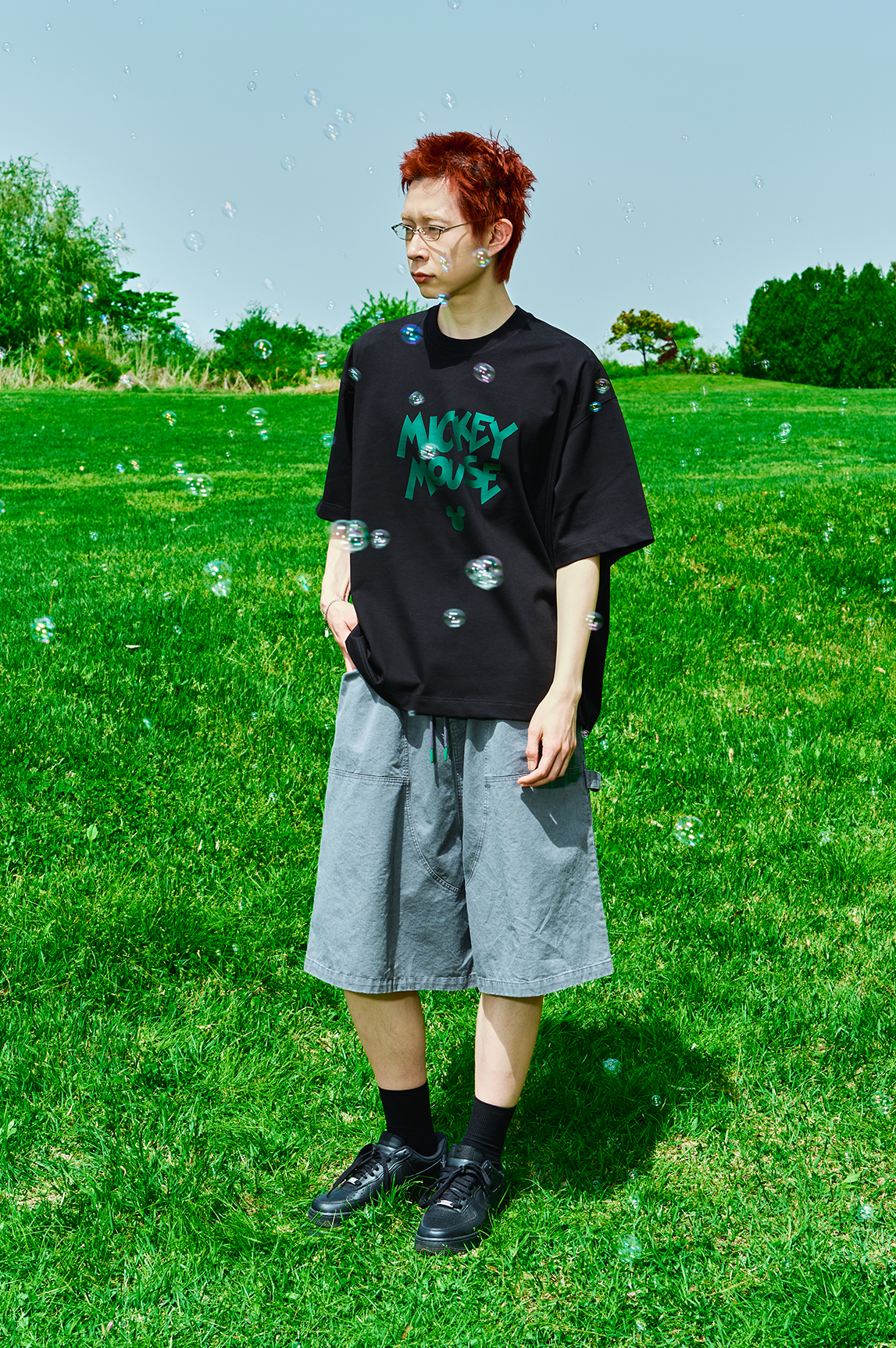 [콜라보] Mickey Mouse half shirts [black]