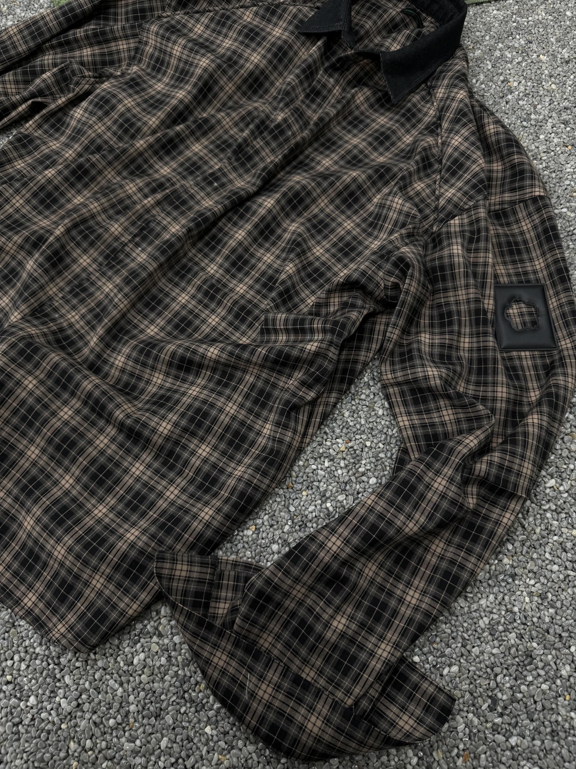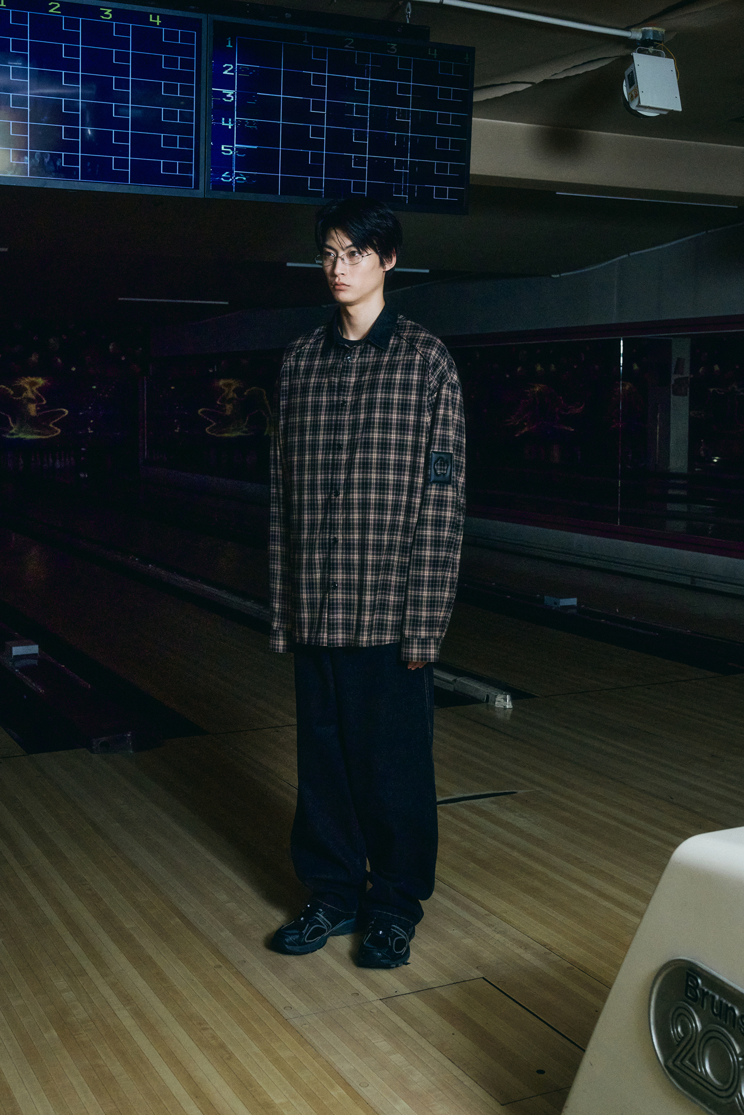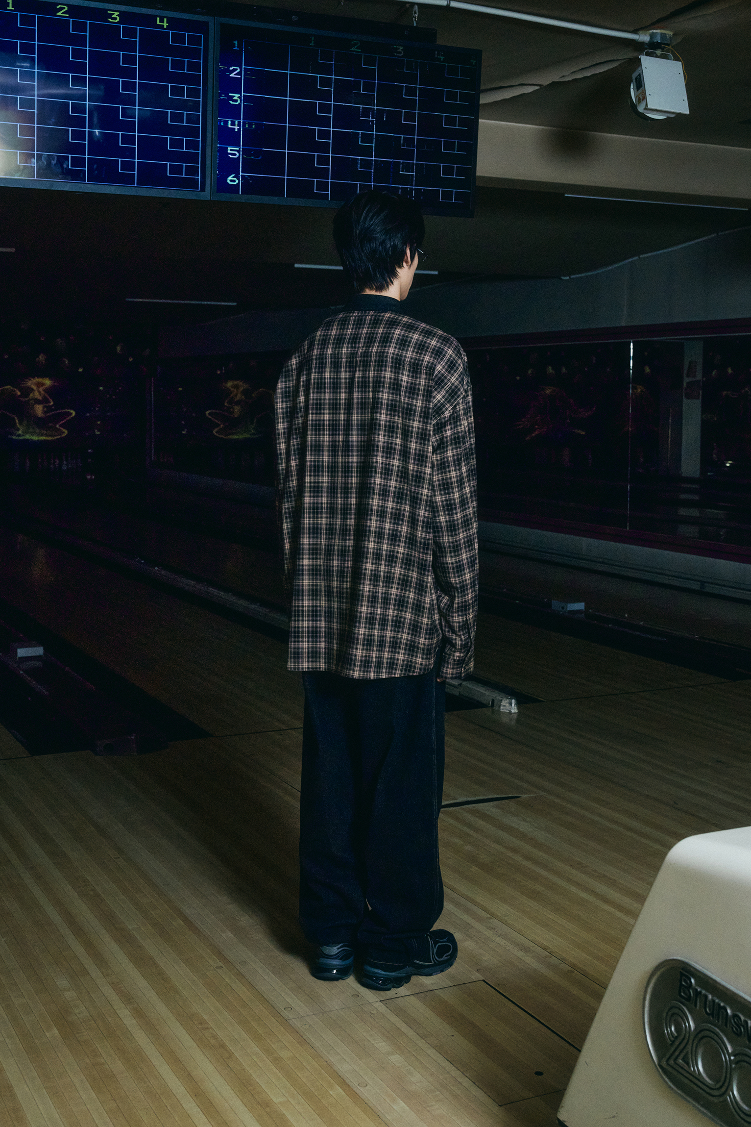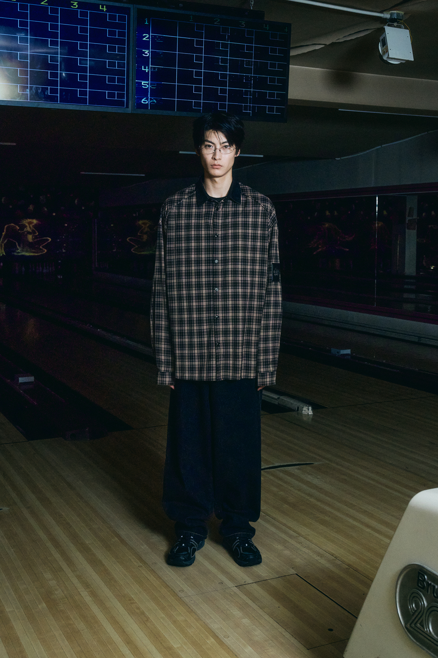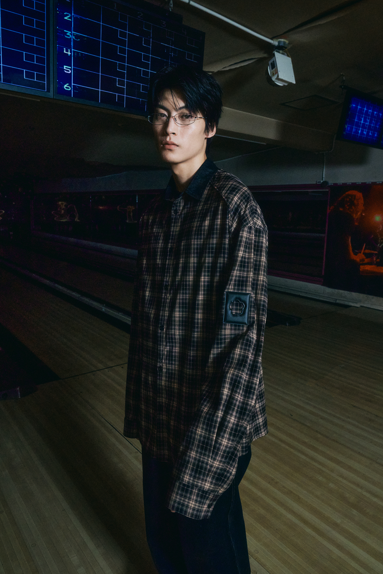 - 데님 카라와 체크 소재를 활용한 패치워크 디자인